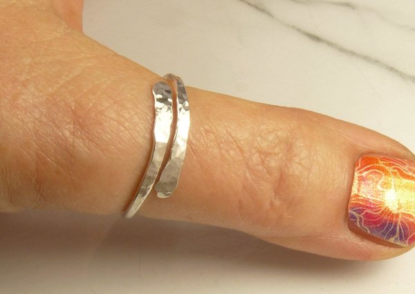 Thumb Ring, bypass ring, Hammered Swirl ring, Sterling Silver ring, Midi Ring