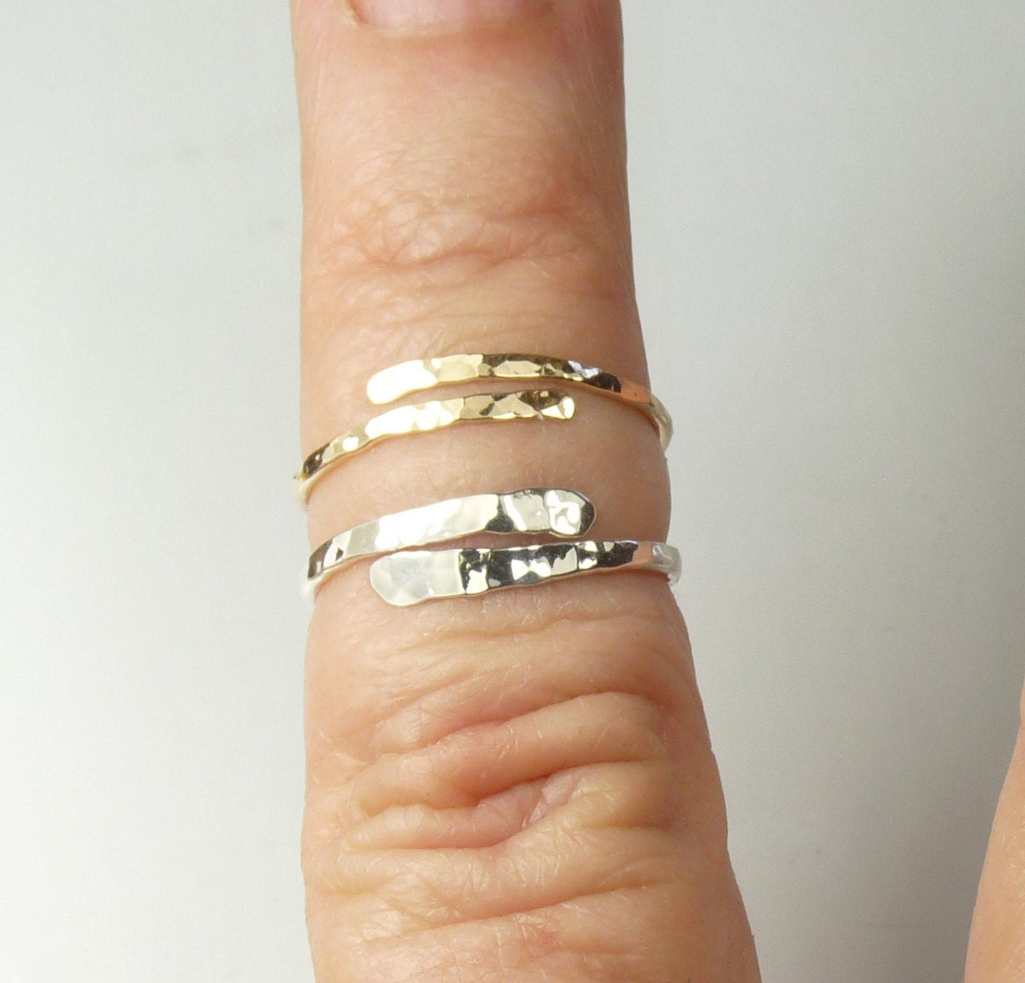 Midi Ring or Pinky Ring, adjustable Ring, Sterling Silver Midi Ring, Hammered Gold or Silver