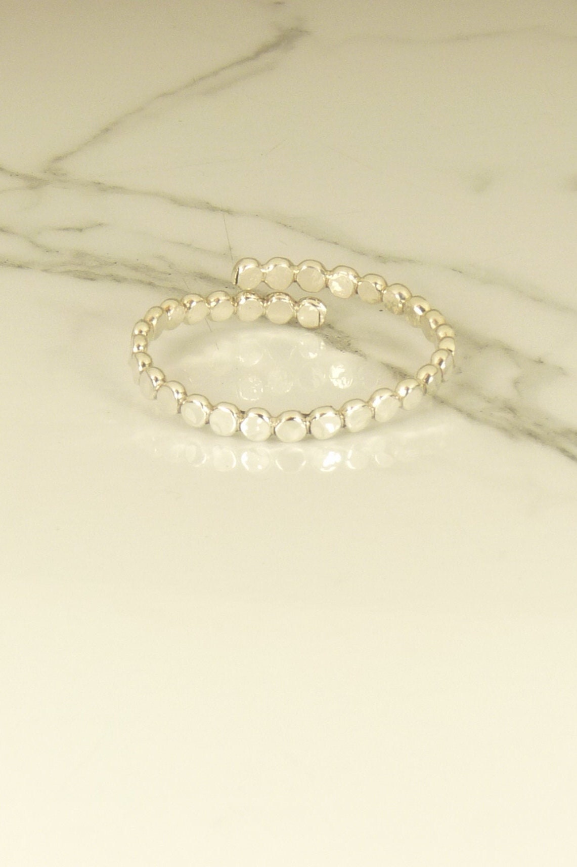 Big toe ring with a hammered bead design.